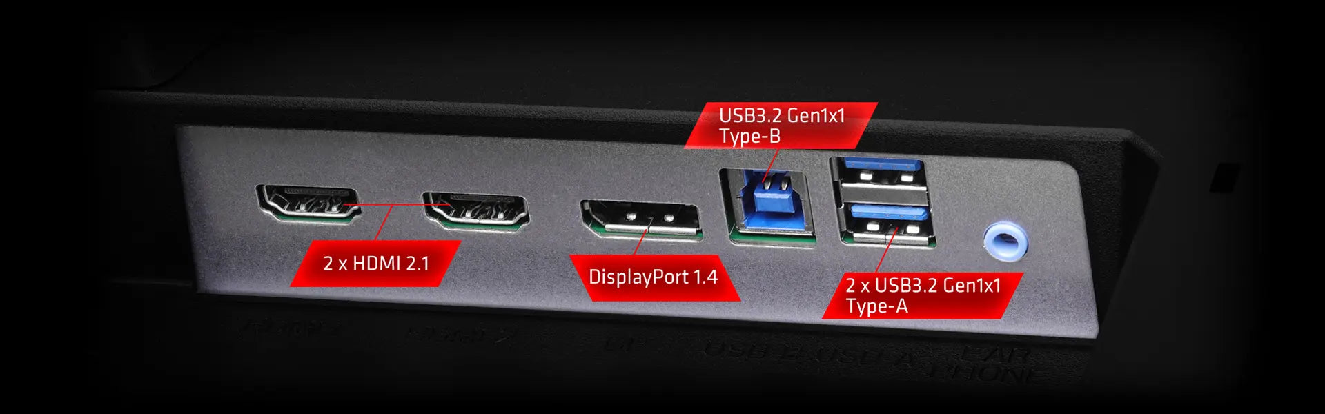 Ports: 2 x HDMI 2.1, 1 x DP 1.4, 2 x USB 3.2 Gen1 Type-A, 1 x USB 3.2 Gen1 Type-B & 1 x Headphone out